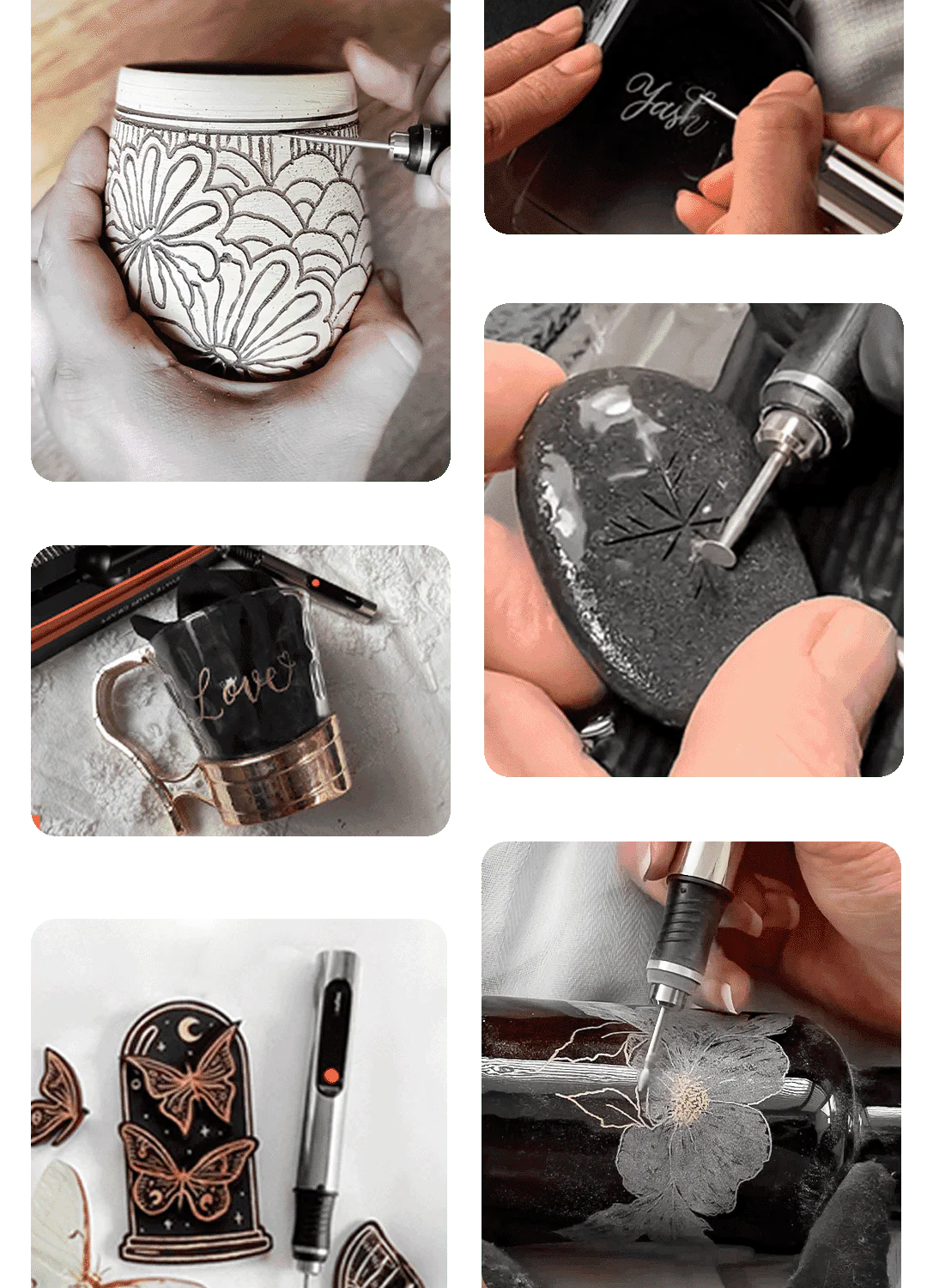 Create Personalized Gifts, Beautiful Decor, and More—All While Taking Time for YourselfThe Voodoo™ Customizer is a powerful cordless engraving pen that turns any surface into your canvas — from wood and glass to metal and plastic. With 30 diamond tips included, it’s your ticket to unleash creativity and make everyday objects truly yours.